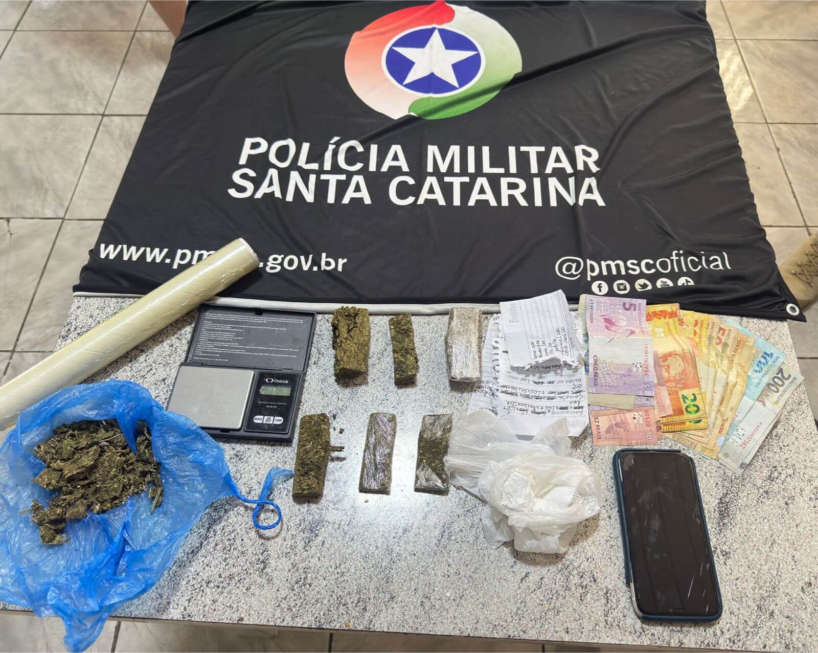 A passageira relatou espontaneamente que na residência do casal havia mais drogas e uma balança de precisão. No local, os policiais encontraram 172,2 gramas de maconha, além da balança e anotações sobre a comercialização dos entorpecentes.