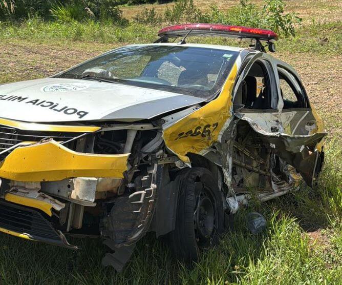 Durante a fuga, o motorista perdeu o controle do veículo na PR-471 e colidiu com uma viatura da PM. Com o impacto, o carro capotou várias vezes, espalhando caixas de cigarros pela rodovia.