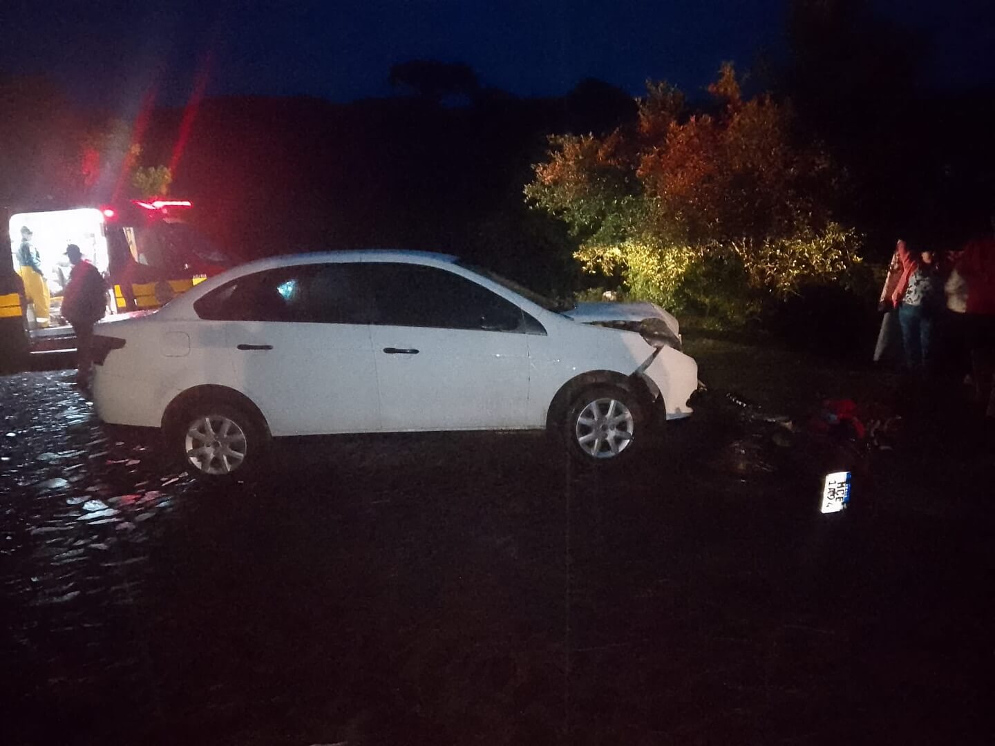 Um acidente de trânsito foi registrado no início da noite desta quarta-feira, dia 12, na Linha Novo Sarandi, interior de São José do Cedro. A ocorrência envolveu um Siena e uma motocicleta Bros, em uma colisão frontal por volta das 18h39.