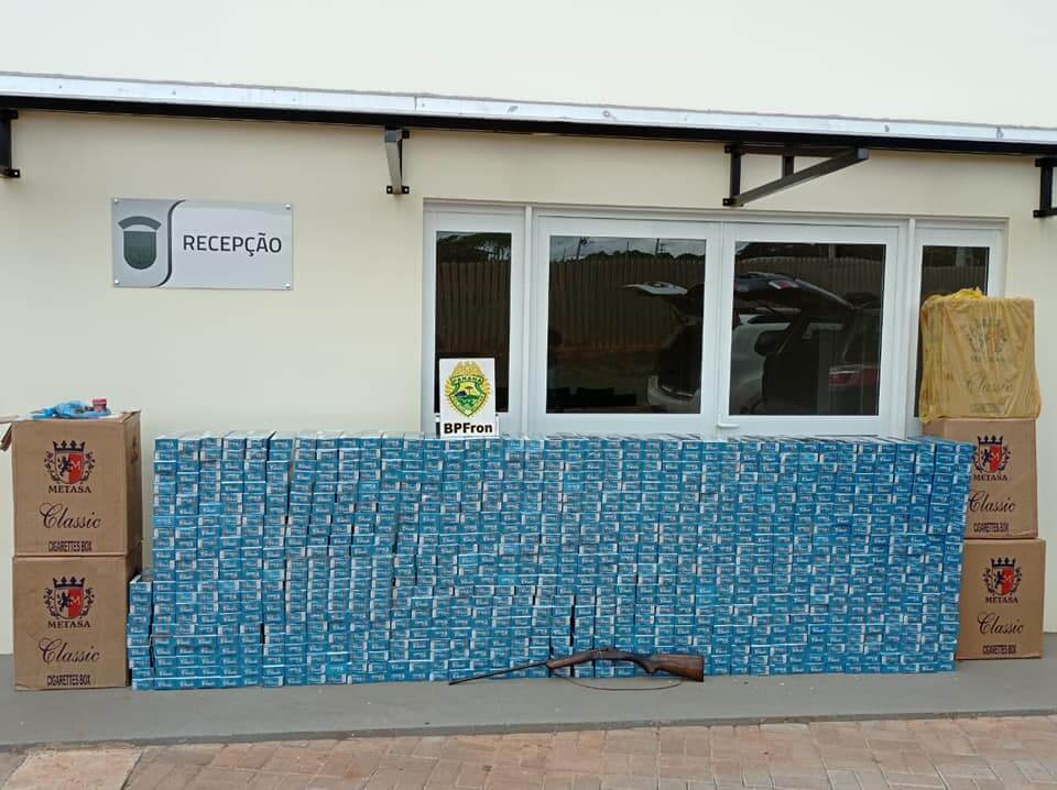 Em um galpão na propriedade rural foram encontrados 1.200 pacotes de cigarros contrabandeados.