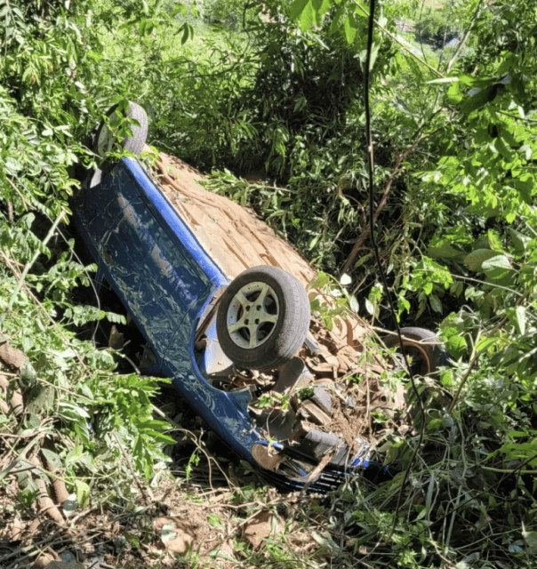 No local, a equipe encontrou um Volkswagen Gol que havia capotado e caído em uma ribanceira. A condutora, uma jovem de 18 anos, já estava fora do veículo, deitada de costas à beira da via. Ela estava consciente e orientada durante o atendimento.