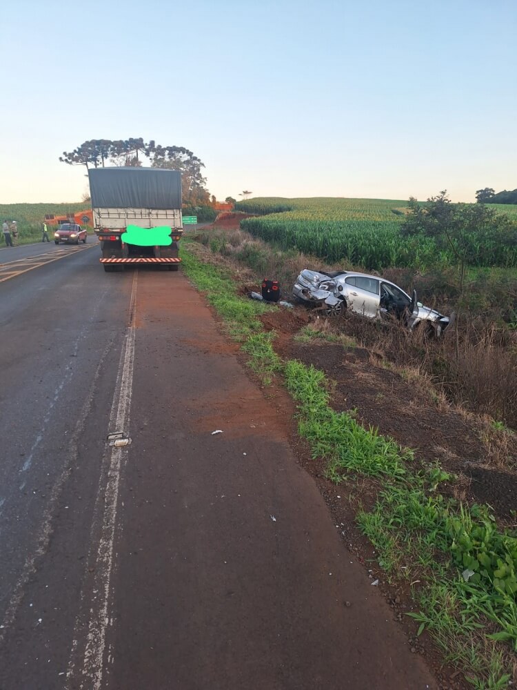 De acordo com a Polícia Militar Rodoviária (PMRv), a ocorrência foi uma colisão transversal envolvendo um Renault/Fluence, com placas de Campo Erê, e uma carreta Scania, emplacada em Saltinho (SC). O Fluence era conduzido por um homem de 30 anos, que não se feriu. No carro estavam ainda a esposa dele, uma mulher de 23 anos, que sofreu lesões leves, e os dois filhos do casal, uma menina de três anos e um bebê de quatro meses, que não se feriram.